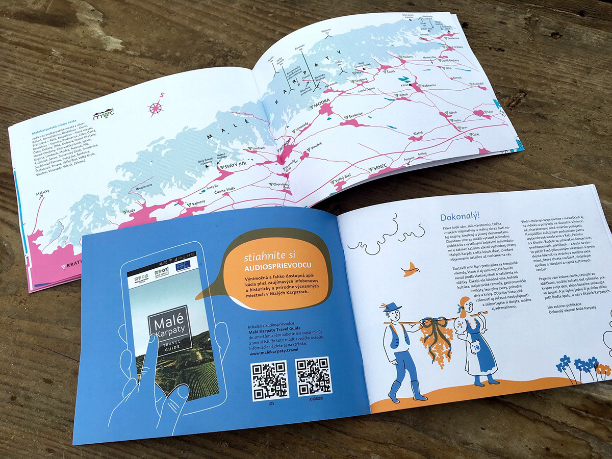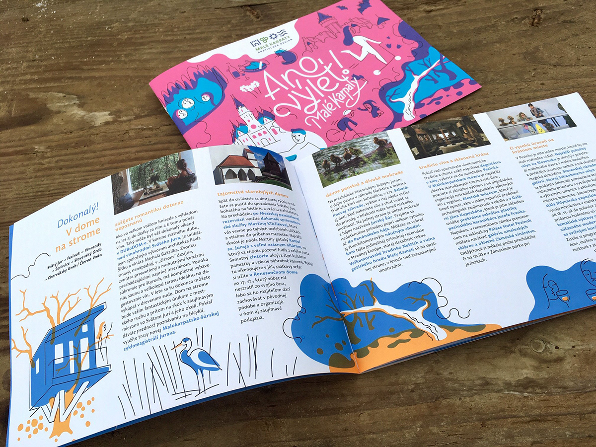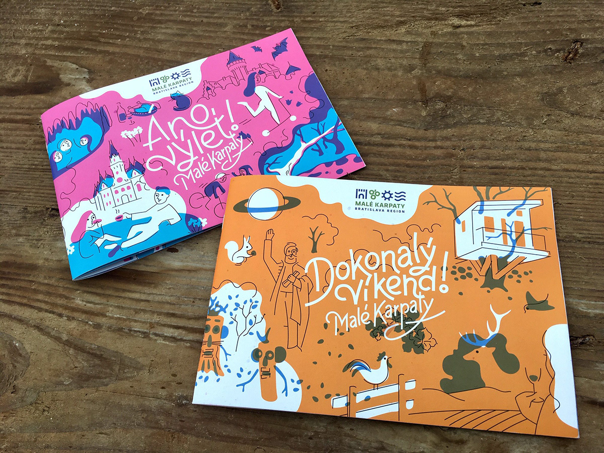 Ilustrácie aj kompletná grafická úprava brožúr na podporu cestovného ruchu pre Malé Karpaty Travel. Publikácie ponúkajú tipy na jednodňové aj víkendové výlety v regióne.