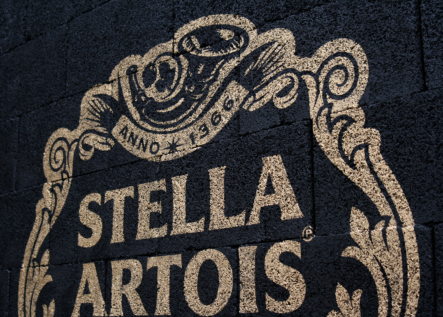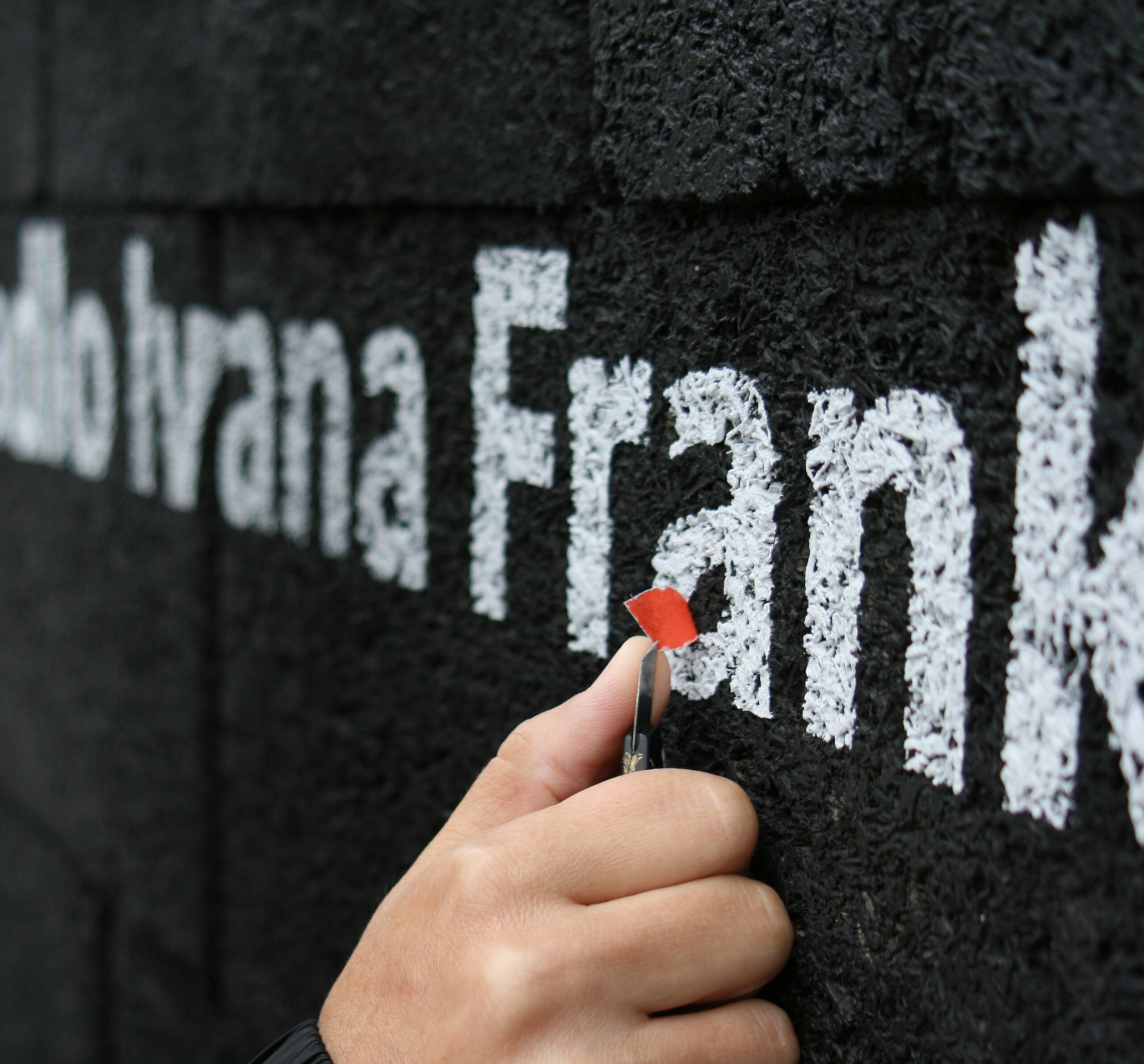 Mojou úlohou bola kompletná realizácia grafických prvkov na múr technikou tupovania cez rezané šablóny.