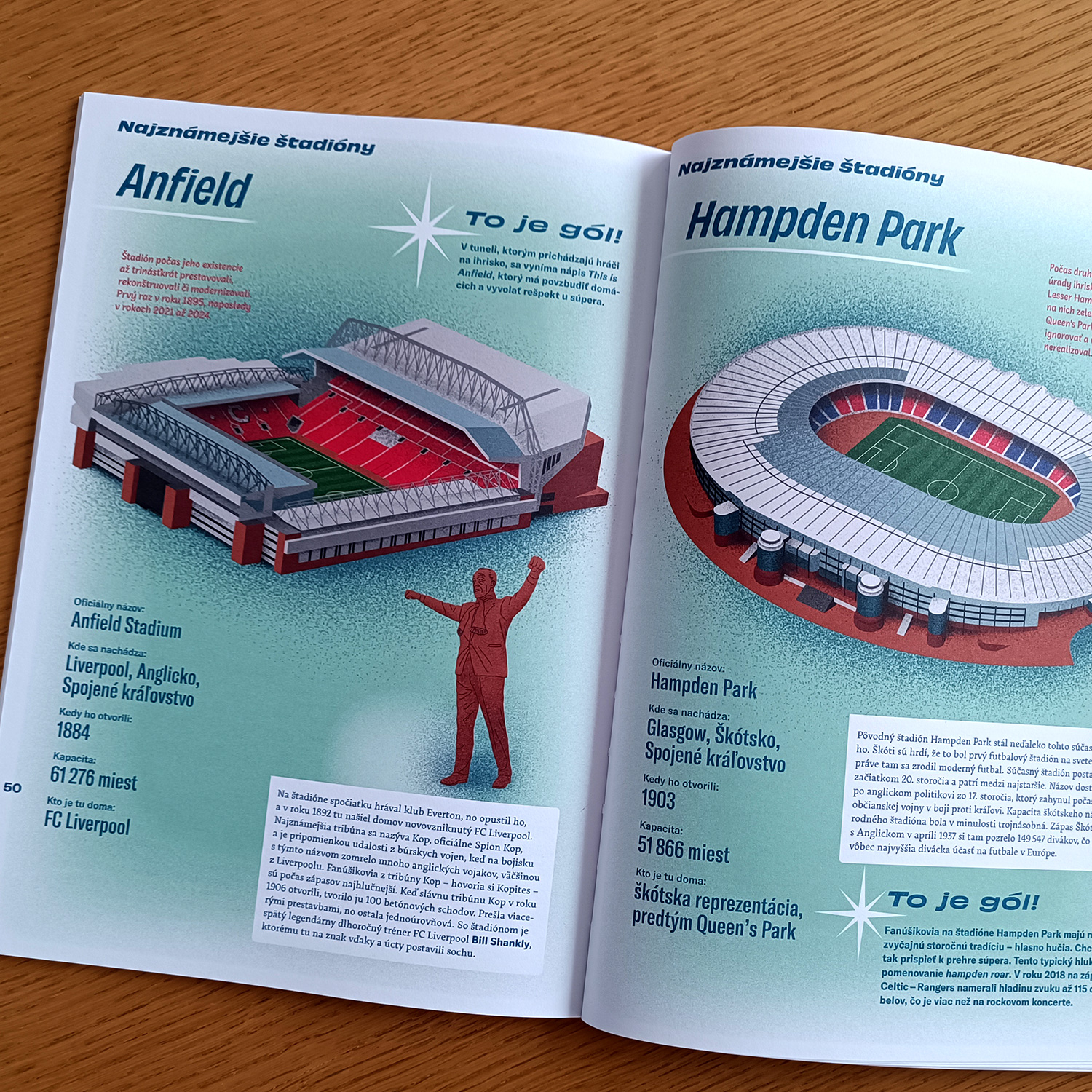 Ilustrácie do knihy z vydavateľstva Petit Press. Publikácia vysvetľuje deťom základy futbalu, od pravidiel a techniky až po typické herné situácie. Súčasťou knihy sú aj ilustrácie známych futbalistov, klubov a ikonických štadiónov. Ilustrácie majú podporiť prehľadnosť, hravosť a jednoduché pochopenie jednotlivých tém.