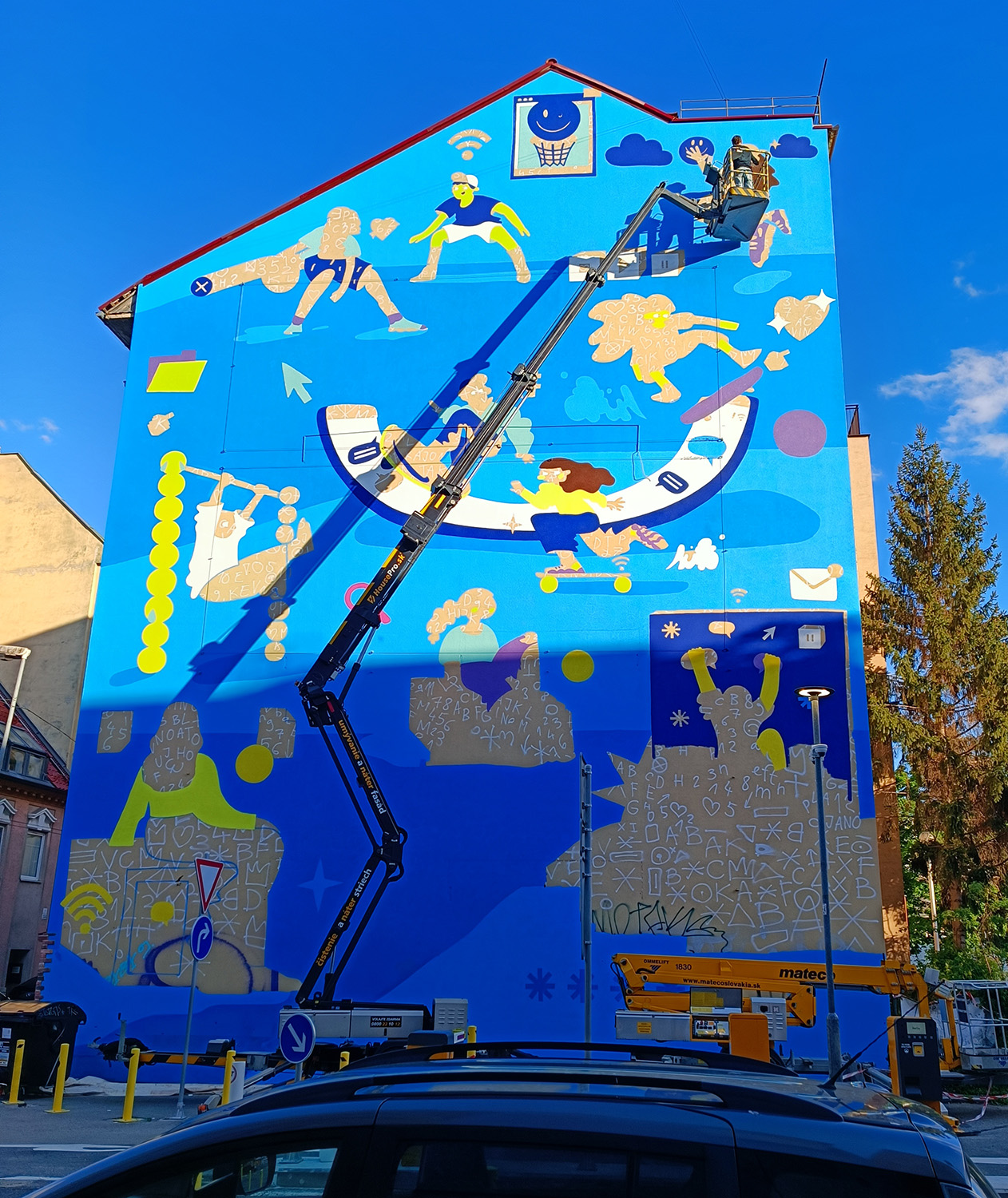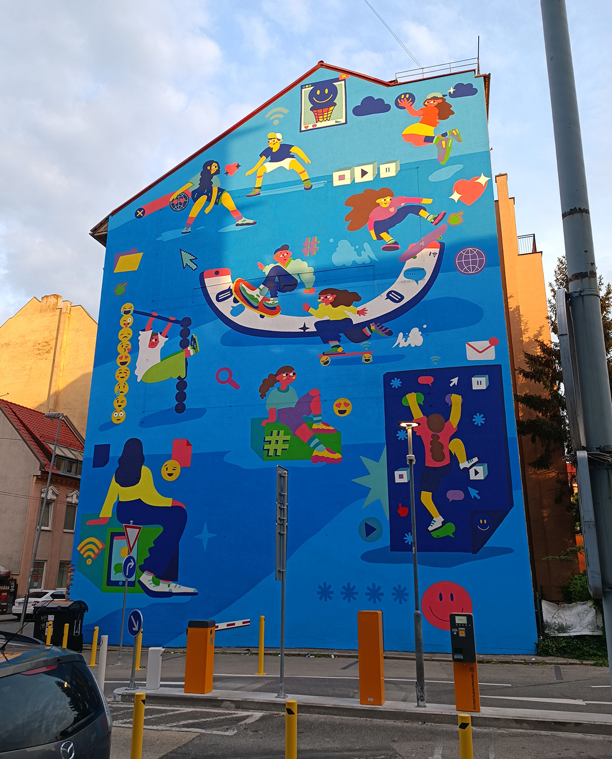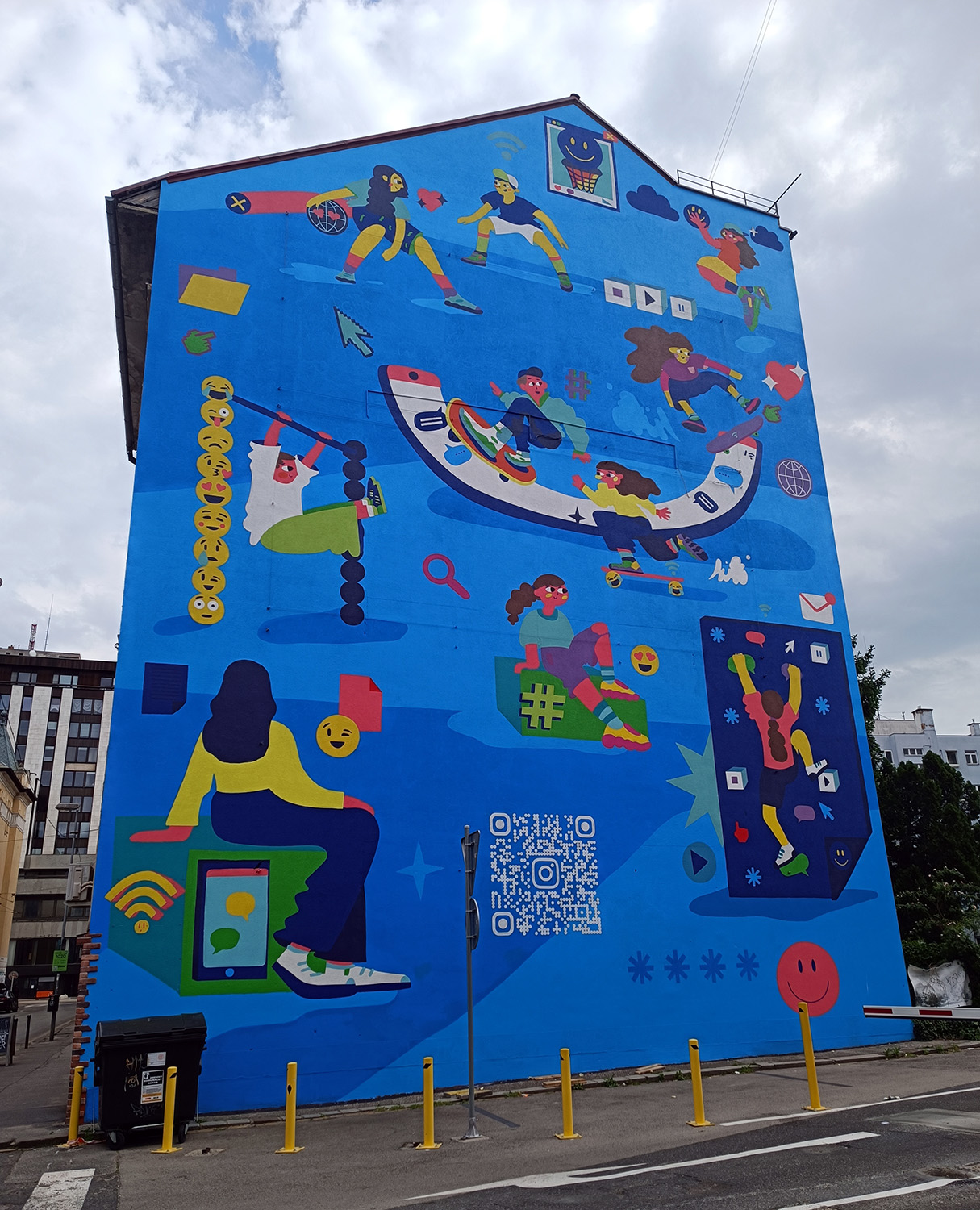 Súčasťou muralu bol aj QR kód, ktorý po naskenovaní spustil rozšírenú realitu (AR). Vďaka tomu sa ilustrácia doplnila o animované prvky a komunikovala tému digitálnych rizík interaktívnym spôsobom. Projekt spojil klasickú nástennú maľbu s modernou technológiou a slúžil ako dočasný vizuál v centre Bratislavy.