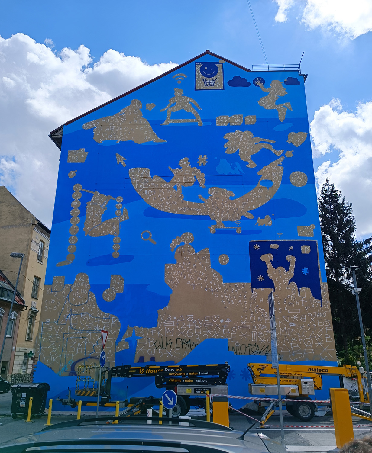 Realizácia dočasného muralu pre mobilného operátora O2 na Rajskej ulici v Bratislave, na rovnakej stene, kde bol skôr umiestnený mural pre dm. Maľba vznikla podľa návrhu kreatívneho štúdia Ové Pictures a bola súčasťou kampane upozorňujúcej na hrozby internetu a kybernetickú bezpečnosť.