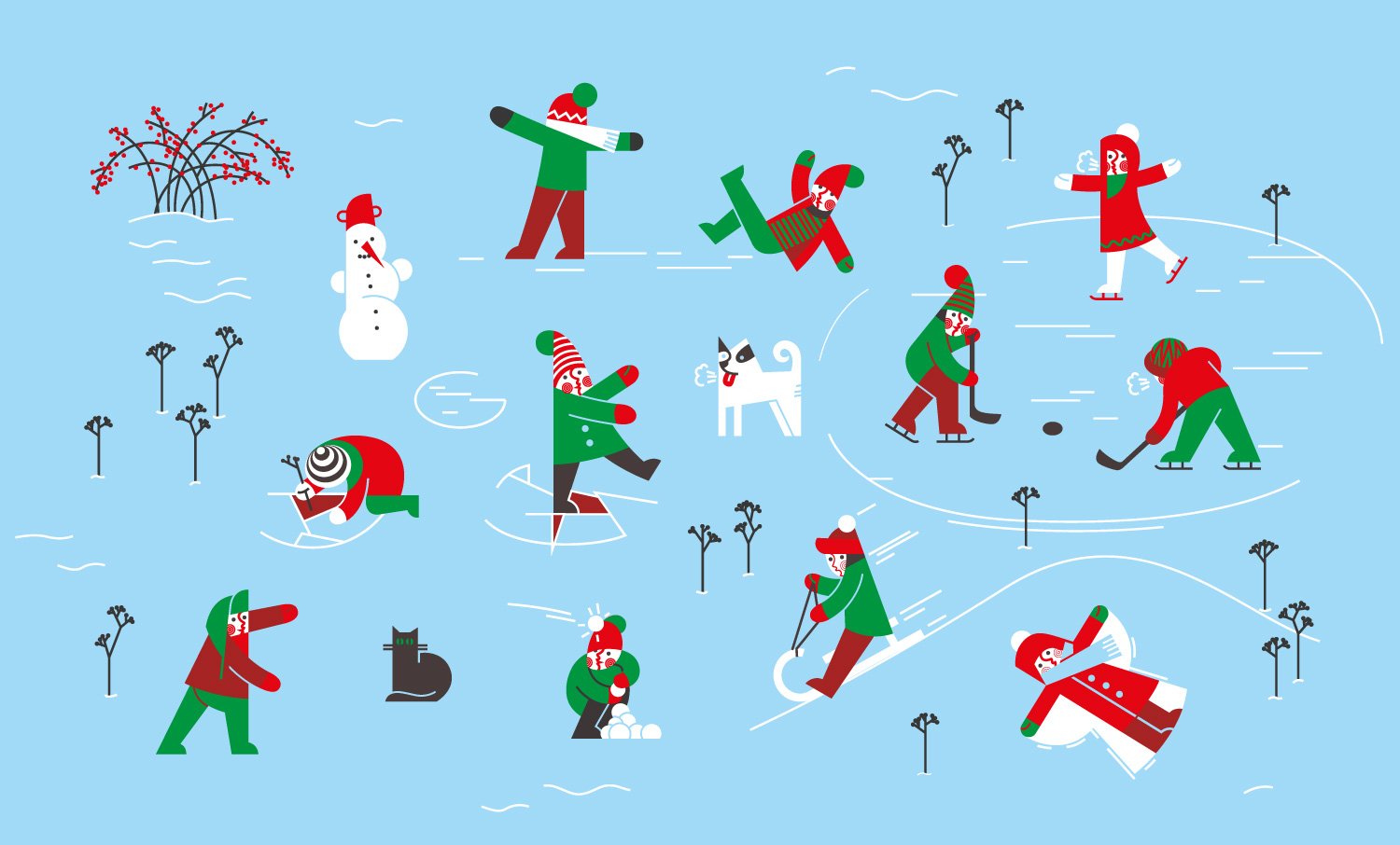 Pre značku Dedoles som vytvoril zimnú ilustráciu plnú detských postavičiek, ktoré sa hrajú v zasneženej krajine. Ilustrácia bola navrhnutá tak, aby sa dala rozdeliť na dva odlišné, ale navzájom prepojené motívy. Každá ponožka tak niesla vlastný výsek zimnej scény, no spolu tvorili ucelený príbeh. Výsledkom bola limitovaná séria veselých zimných ponožiek s typickým mojím autorským rukopisom.